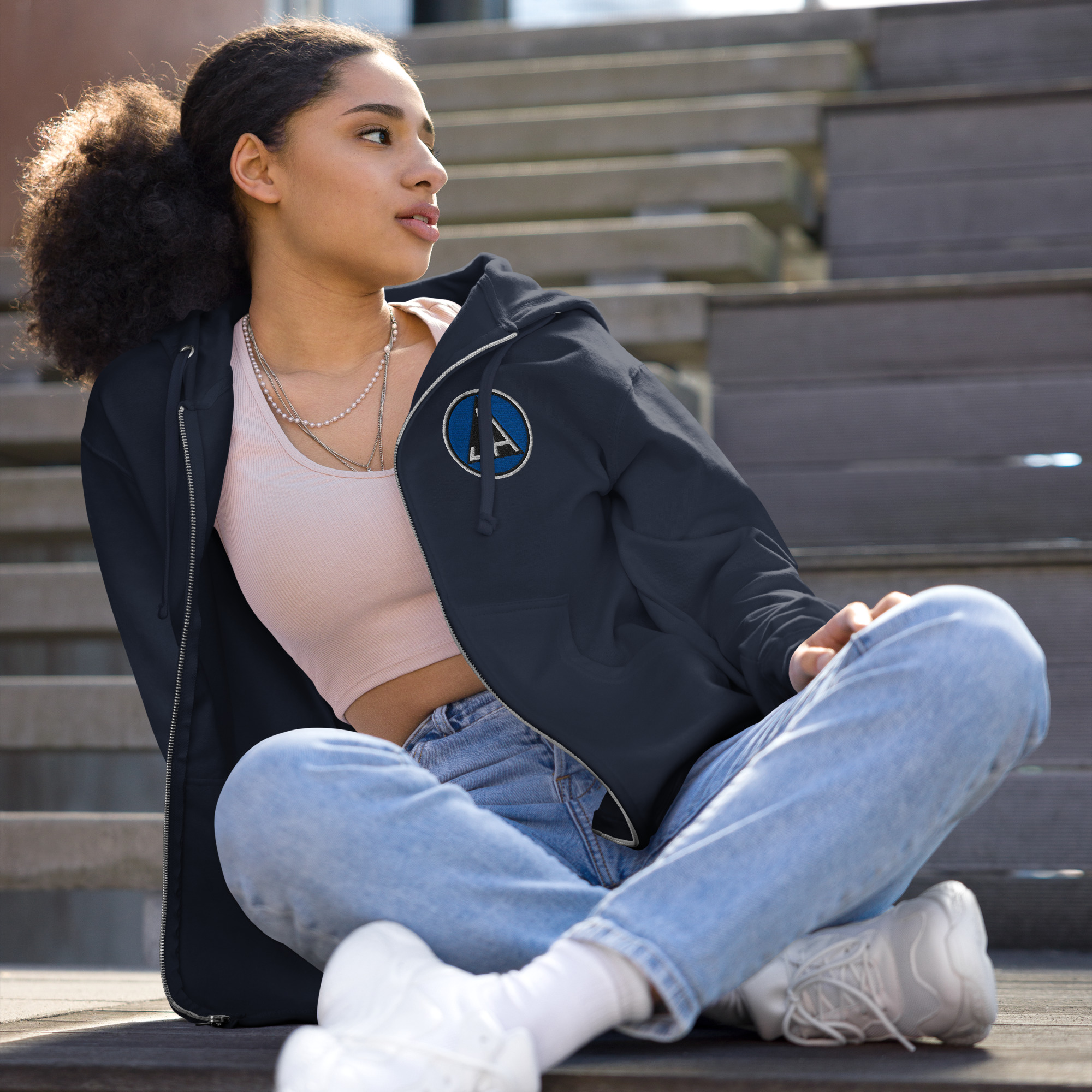 With its soft, premium quality fleece fabric and jersey-lined hood, this unisex zip-up hoodie will be a cozy addition to your outfit. Pair it with jeans, shorts, a skirt, or a dress to stay warm in style.